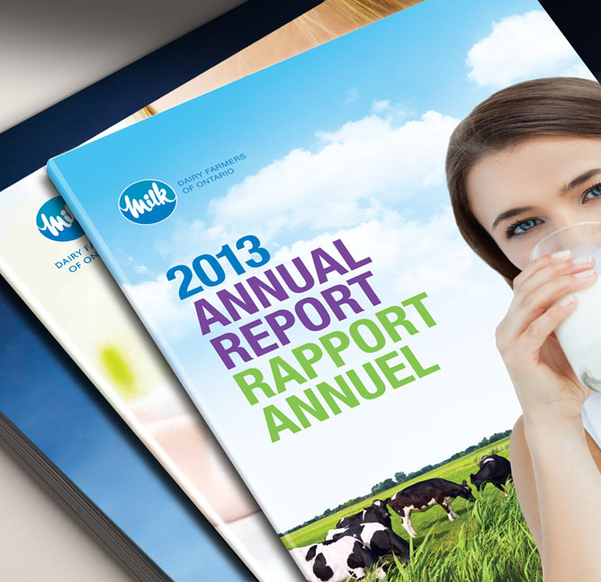 Spalding Media has been designing the Dairy Farmer's annual report for each of the past 11 years. The reports reinforce the DFO brand and communicate their vision of a dynamic, profitable, growing dairy industry. Utilizing bold illustration, compelling photography, specialized print and finishing techniques such as uv coating, foil stamping and embossing, the reports have been an effective touch point, reaching out to stakeholders, sponsors and the farming community alike.